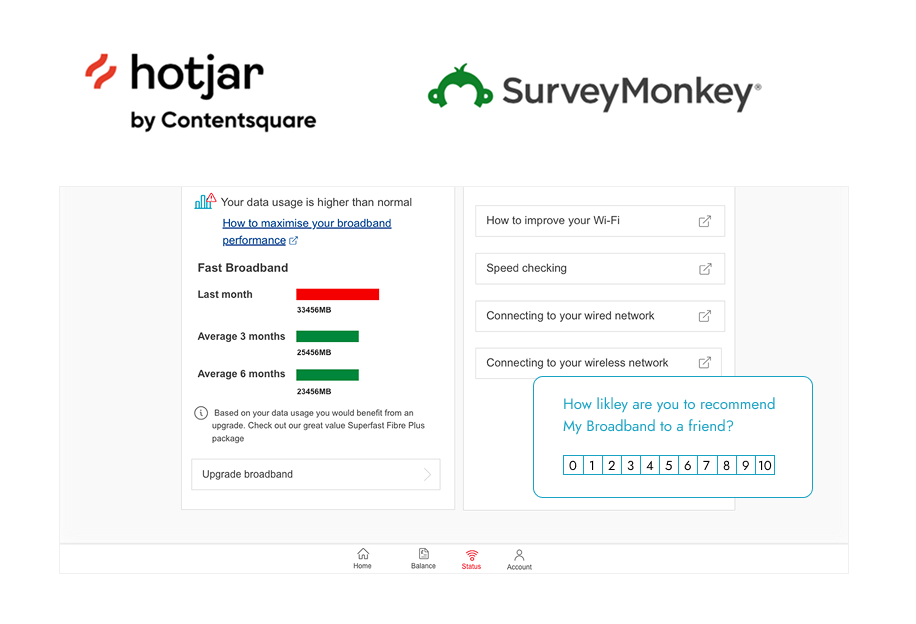 Working with the broadband team, I redesigned the existing app using the Shell design library and developing new features that enhanced customer self-service. The updated app enabled users to easily monitor their broadband speed, access router troubleshooting information, and upgrade their plans, providing greater value and autonomy to clients.